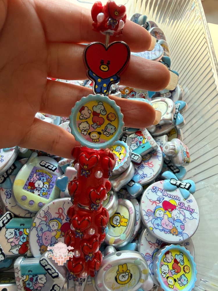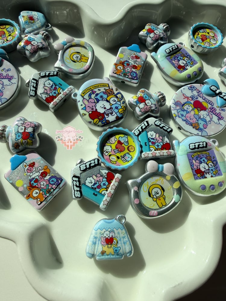 This listing features exquisite mixed BT21 bead mix. Ideal for various DIY projects including beadable pens, earrings, phone charms, keychains, bracelets, scrapbooking, and more