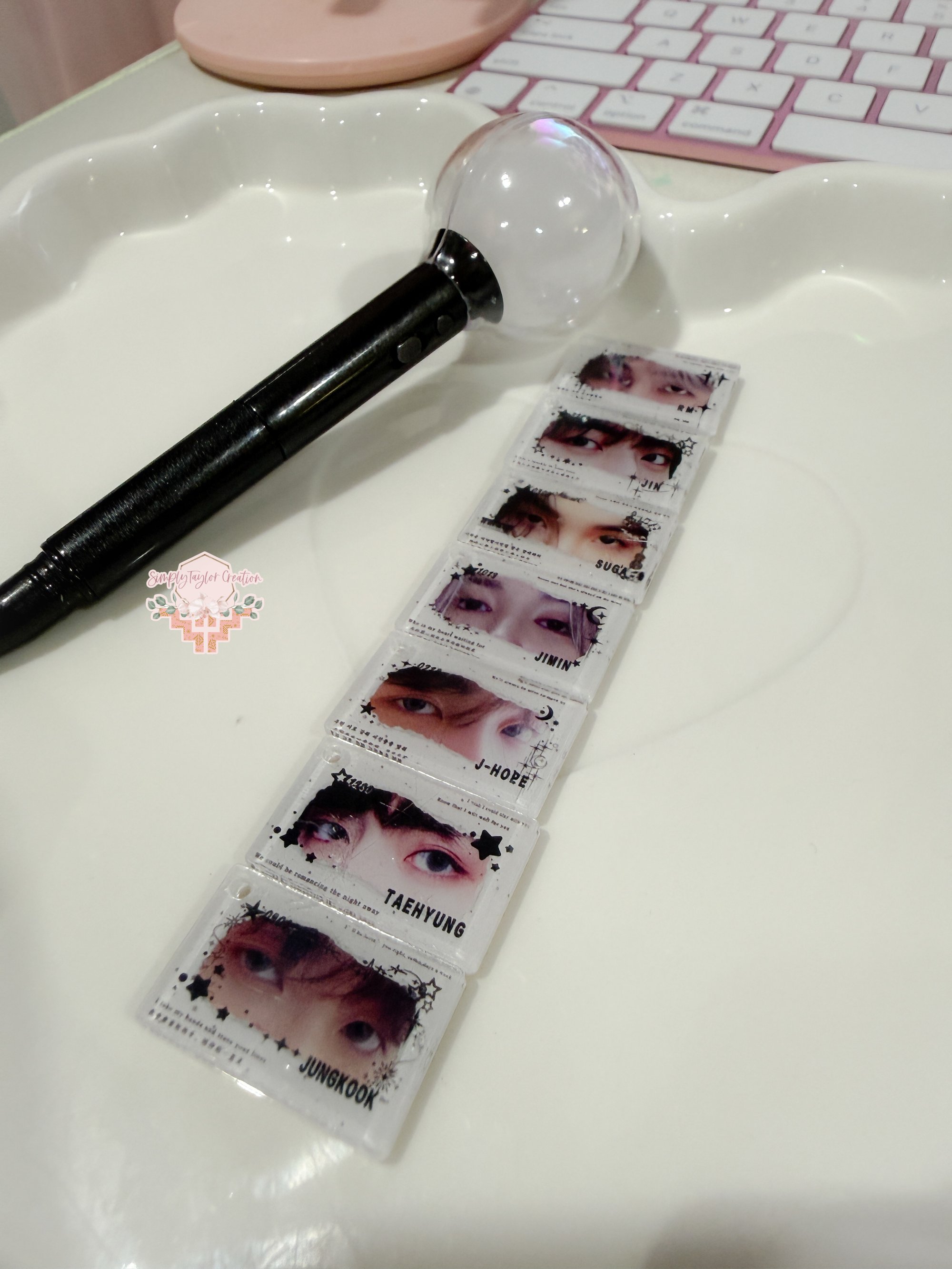 This listing is only for our mixed New BTS memeber eyes 2cm Acrylic charms. Each Acrylic come with clear protection film.